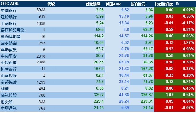 Adr, adr指數, adr港股指數, adr港股比例 指數, adr即時報價, adr港股預托證券報價.